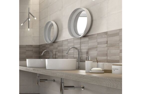 Ze względu na specyfikę produkcji płytek, mogą wystąpić różnice w odcieniach pomiędzy płytkami na ścianę, podłogę oraz dekoracjami (ściennymi, cokołami, listwami, stopnicami itp.). Więcej>>