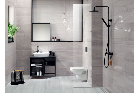 Ze względu na specyfikę produkcji płytek, mogą wystąpić różnice w odcieniach pomiędzy płytkami na ścianę, podłogę oraz dekoracjami (ściennymi, cokołami, listwami, stopnicami itp.). Więcej>>