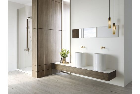 Ze względu na specyfikę produkcji płytek, mogą wystąpić różnice w odcieniach pomiędzy płytkami na ścianę, podłogę oraz dekoracjami (ściennymi, cokołami, listwami, stopnicami itp.). Więcej>>