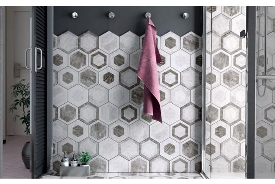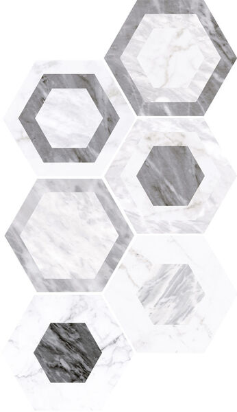 Bardiglio to bardzo bogata kolekcja płytek dzięki której stworzymy wiele ciekawych aranżacji. W kolekcji dostępne mamy prostokątne płytki ścienne, płytki wyglądające jak wklęsłe kafle, płytki heksagonalne w trzech wzorach: bazowym, geometrycznym i kwiatowym, tzw. kafle oraz płytki dekoracyjne ze wzorami patchworkowymi. Dzięki jaśniejszej i ciemniejszej kolorystyce płytek w rozmiarach 7,5x30 cm oraz 7,5x15 cm, heksagonalne 17,5x20 cm możemy stworzyć jeszcze ciekawsze aranżacje. Kolekcja to połączenie klasyki i nowoczesności: wzoru marmurowego o gęstej siatce żyłek oraz kształtów obecnie modnych czyli sześciokątów. W kolekcji dostępne są również listwy, cygara czy londony.