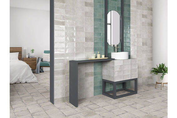 Ze względu na specyfikę produkcji płytek, mogą wystąpić różnice w odcieniach pomiędzy płytkami na ścianę, podłogę oraz dekoracjami (ściennymi, cokołami, listwami, stopnicami itp.). Więcej>>