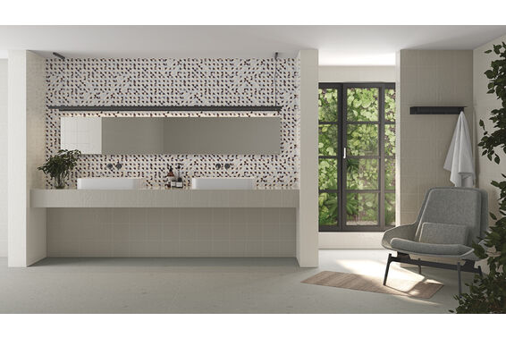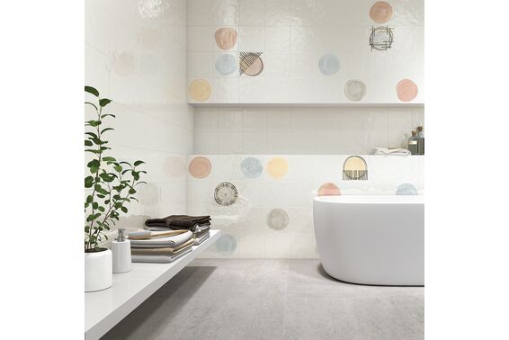 Ze względu na specyfikę produkcji płytek, mogą wystąpić różnice w odcieniach pomiędzy płytkami na ścianę, podłogę oraz dekoracjami (ściennymi, cokołami, listwami, stopnicami itp.). Więcej>>