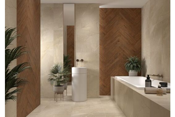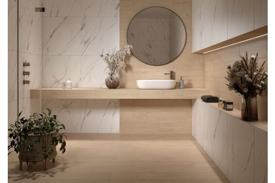 Ze względu na specyfikę produkcji płytek, mogą wystąpić różnice w odcieniach pomiędzy płytkami na ścianę, podłogę oraz dekoracjami (ściennymi, cokołami, listwami, stopnicami itp.). Więcej>>