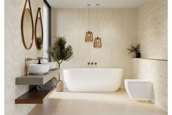 Ze względu na specyfikę produkcji płytek, mogą wystąpić różnice w odcieniach pomiędzy płytkami na ścianę, podłogę oraz dekoracjami (ściennymi, cokołami, listwami, stopnicami itp.). Więcej>>