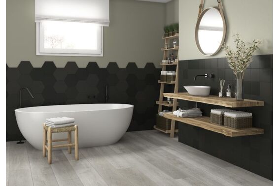 Ze względu na specyfikę produkcji płytek, mogą wystąpić różnice w odcieniach pomiędzy płytkami na ścianę, podłogę oraz dekoracjami (ściennymi, cokołami, listwami, stopnicami itp.). Więcej>>