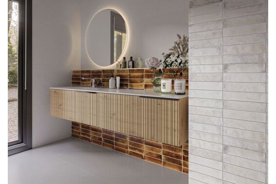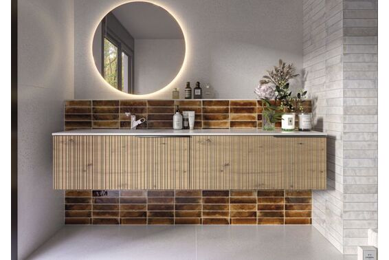 Ze względu na specyfikę produkcji płytek, mogą wystąpić różnice w odcieniach pomiędzy płytkami na ścianę, podłogę oraz dekoracjami (ściennymi, cokołami, listwami, stopnicami itp.). Więcej>>