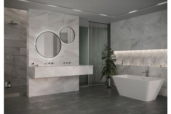 Ze względu na specyfikę produkcji płytek, mogą wystąpić różnice w odcieniach pomiędzy płytkami na ścianę, podłogę oraz dekoracjami (ściennymi, cokołami, listwami, stopnicami itp.). Więcej>>