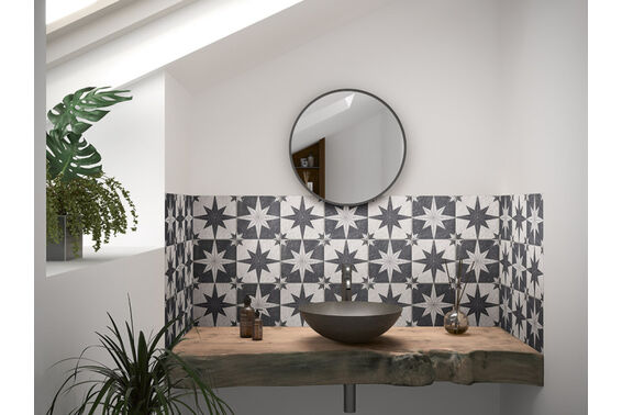 Ze względu na specyfikę produkcji płytek, mogą wystąpić różnice w odcieniach pomiędzy płytkami na ścianę, podłogę oraz dekoracjami (ściennymi, cokołami, listwami, stopnicami itp.). Więcej>>