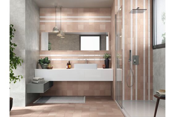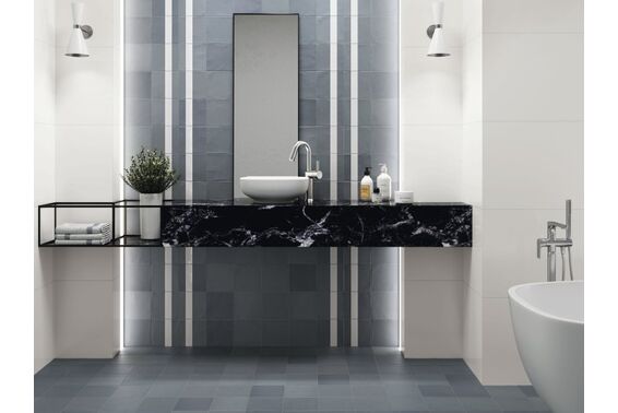 Ze względu na specyfikę produkcji płytek, mogą wystąpić różnice w odcieniach pomiędzy płytkami na ścianę, podłogę oraz dekoracjami (ściennymi, cokołami, listwami, stopnicami itp.). Więcej>>