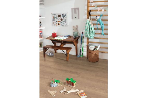 Large 8 mm AC4 to kolekcja paneli dostępnych w nieco szerszym od standardowego rozmiarze wynoszącym 24,6 cm. Kolekcja zawiera panele w trzech kolorach chłodniejszych - białych oraz w sześciu cieplejszych, brązowych. Panele mają wymiary 129,1x24,6 cm oraz 0,8 cm grubości, czwartą klasę ścieralności AC4. Łatwy montaż dzięki systemowi UNI fit!. Panele zależności od koloru panele posiadają strukturę omnipore lub natural pore oraz czterostronną V-fugę. Panel Dąb Valley posiada właściwości antypoślizgowe R10.