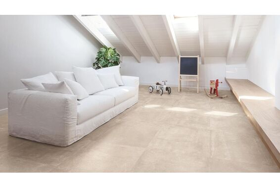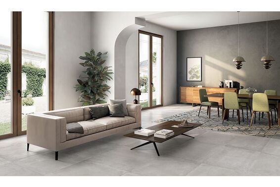 Be-Square to kolekcja rektyfikowana w której znajdziemy dwa rodzaje płytek: matowe oraz matowo-błyszczące czyli w wykończeniu lappato. Płytki dostępne są w rozmiarze dość uniwersalnym, 60x60 cm, który swobodnie użyjemy przy mniejszych i większych aranżacjach. Płytki oddają ducha czystego a jednocześnie efektownego w wykonaniu betonu, który stał się bardzo popularnym materiałem w różnych rodzajach aranżacji od kuchni, przez salon do łazienki. Tę kolekcję możemy także użyć na zewnątrz, na tarasie i balkonie.