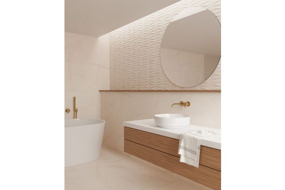 Ze względu na specyfikę produkcji płytek, mogą wystąpić różnice w odcieniach pomiędzy płytkami na ścianę, podłogę oraz dekoracjami (ściennymi, cokołami, listwami, stopnicami itp.). Więcej>>