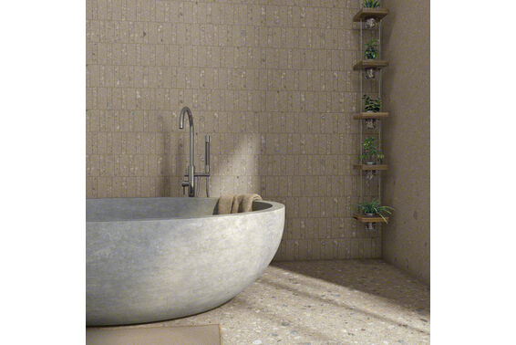 Ze względu na specyfikę produkcji płytek, mogą wystąpić różnice w odcieniach pomiędzy płytkami na ścianę, podłogę oraz dekoracjami (ściennymi, cokołami, listwami, stopnicami itp.). Więcej>>