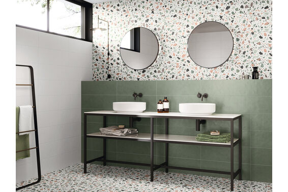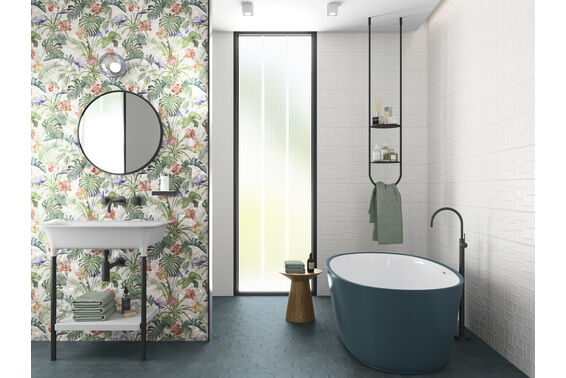 Ze względu na specyfikę produkcji płytek, mogą wystąpić różnice w odcieniach pomiędzy płytkami na ścianę, podłogę oraz dekoracjami (ściennymi, cokołami, listwami, stopnicami itp.). Więcej>>
