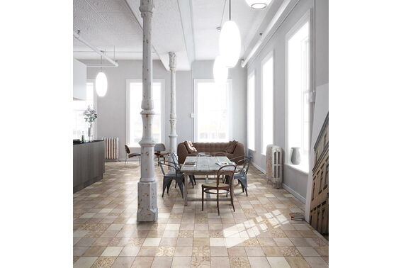 Ze względu na specyfikę produkcji płytek, mogą wystąpić różnice w odcieniach pomiędzy płytkami na ścianę, podłogę oraz dekoracjami (ściennymi, cokołami, listwami, stopnicami itp.). Więcej>>