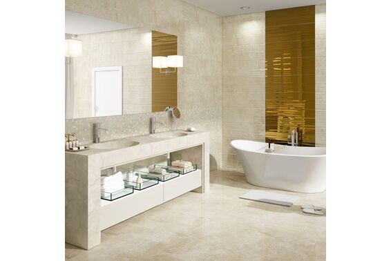 Ze względu na specyfikę produkcji płytek, mogą wystąpić różnice w odcieniach pomiędzy płytkami na ścianę, podłogę oraz dekoracjami (ściennymi, cokołami, listwami, stopnicami itp.). Więcej>>