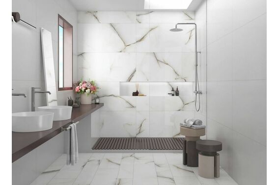 Ze względu na specyfikę produkcji płytek, mogą wystąpić różnice w odcieniach pomiędzy płytkami na ścianę, podłogę oraz dekoracjami (ściennymi, cokołami, listwami, stopnicami itp.). Więcej>>
