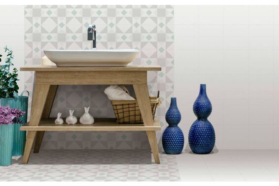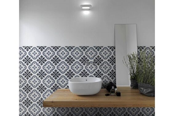 Ze względu na specyfikę produkcji płytek, mogą wystąpić różnice w odcieniach pomiędzy płytkami na ścianę, podłogę oraz dekoracjami (ściennymi, cokołami, listwami, stopnicami itp.). Więcej>>