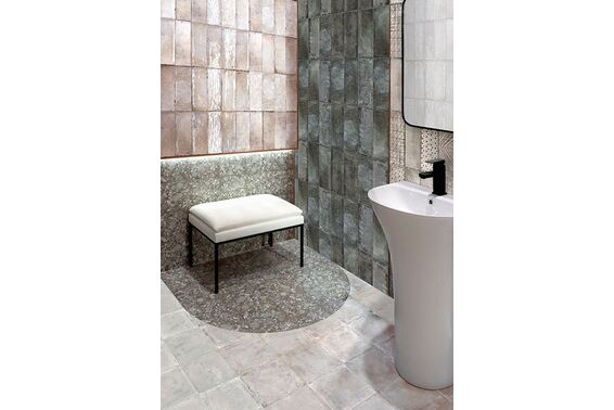 Ze względu na specyfikę produkcji płytek, mogą wystąpić różnice w odcieniach pomiędzy płytkami na ścianę, podłogę oraz dekoracjami (ściennymi, cokołami, listwami, stopnicami itp.). Więcej>>