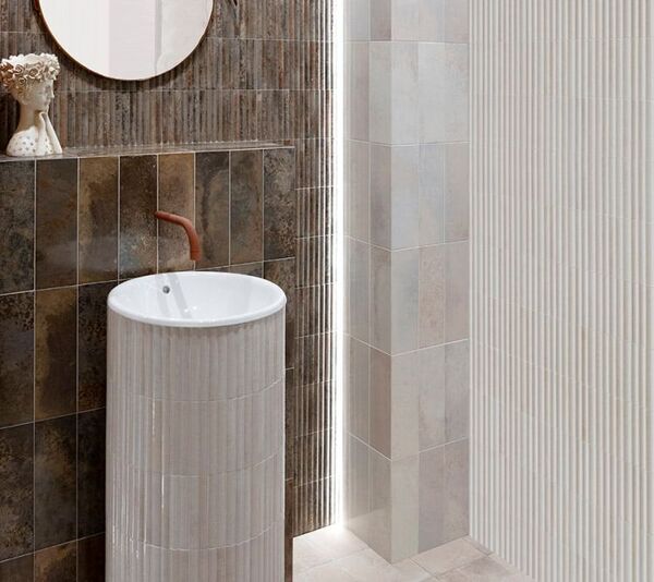 Ze względu na specyfikę produkcji płytek, mogą wystąpić różnice w odcieniach pomiędzy płytkami na ścianę, podłogę oraz dekoracjami (ściennymi, cokołami, listwami, stopnicami itp.). Więcej>>