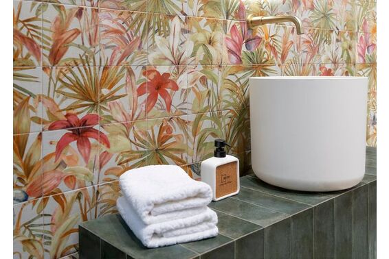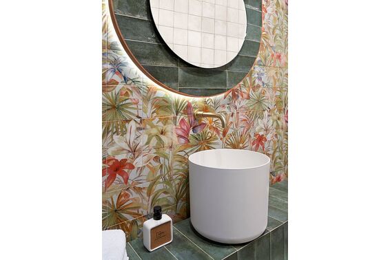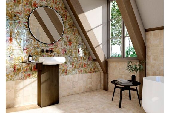Ze względu na specyfikę produkcji płytek, mogą wystąpić różnice w odcieniach pomiędzy płytkami na ścianę, podłogę oraz dekoracjami (ściennymi, cokołami, listwami, stopnicami itp.). Więcej>>