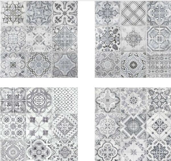 Płytki Manises to bogate, romantyczne wzornictwo. Rozmiar płytek to 60x60 cm, ich powierzchnia jest matowa, charakteryzują się dużą odpornością na ścieranie. W opakowaniu znajdują się cztery płytki, które różnią się układem wzorów. Powierzchnia płytek została podzielona na dziewięć równych części, które oddziela delikatny rowek. Każdą część zdobi inny wzór. Po ułożeniu każdy wzór wygląda jak osobna płytka. Płytki wpisują się w trend patchworków. Na płytkach dodatkowo zastosowano delikatny efekt postarzania w postaci delikatnych przetarć. Płytki będą dobrze się prezentować na ścianach i podłogach wnętrz w stylu vintage oraz nowoczesnych.