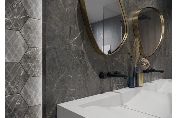 Ze względu na specyfikę produkcji płytek, mogą wystąpić różnice w odcieniach pomiędzy płytkami na ścianę, podłogę oraz dekoracjami (ściennymi, cokołami, listwami, stopnicami itp.). Więcej>>