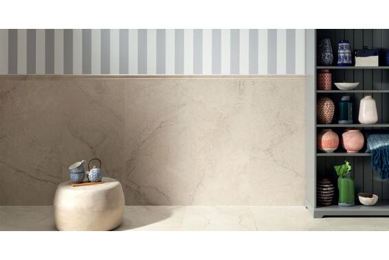 Ze względu na specyfikę produkcji płytek, mogą wystąpić różnice w odcieniach pomiędzy płytkami na ścianę, podłogę oraz dekoracjami (ściennymi, cokołami, listwami, stopnicami itp.). Więcej>>