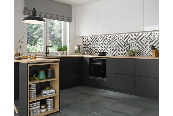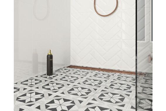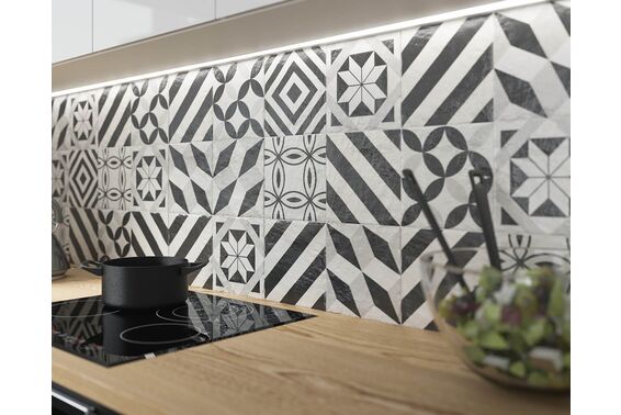 Modern to wyjątkowa kolekcja płytek w marokańskim stylu. Płytki podłogowe, choć doskonale nadające się również na ściany o nierektyfikowanych wymiarach 19,8x19,8 cm łączą w sobie tradycję i nowoczesność. Płytki doskonałe zarówno do wnętrz, jak i na zewnątrz, mają matową powierzchnię. Pokrywa je wzór geometryczny w biało-czarnej kolorystyce. Dotyczy ona zarówno dekoracji, jak płytek bazowych w których znajdziemy płytki klasyczne i oktagonalne o strukturalnej powierzchni.
