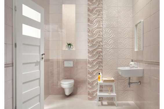 Ze względu na specyfikę produkcji płytek, mogą wystąpić różnice w odcieniach pomiędzy płytkami na ścianę, podłogę oraz dekoracjami (ściennymi, cokołami, listwami, stopnicami itp.). Więcej>>