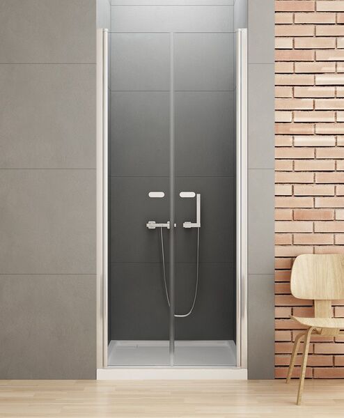 Dwuskrzydłowe drzwi wnękowe do zabudowy prysznicowej. Ich wyjątkowość polega na tym, że mogą się otwierać zarówno do wewnątrz, jak i na zewnątrz. Szkło czyste drzwi ma grubość 6 mm i pokryte jest powłoką Active Shield. Drzwi wyposażone są w magnetyczną uszczelkę, mają regulację ścienną, unoszą się przy otwieraniu. To produkt, który polecamy dla osób niepełnosprawnych oraz starszych.