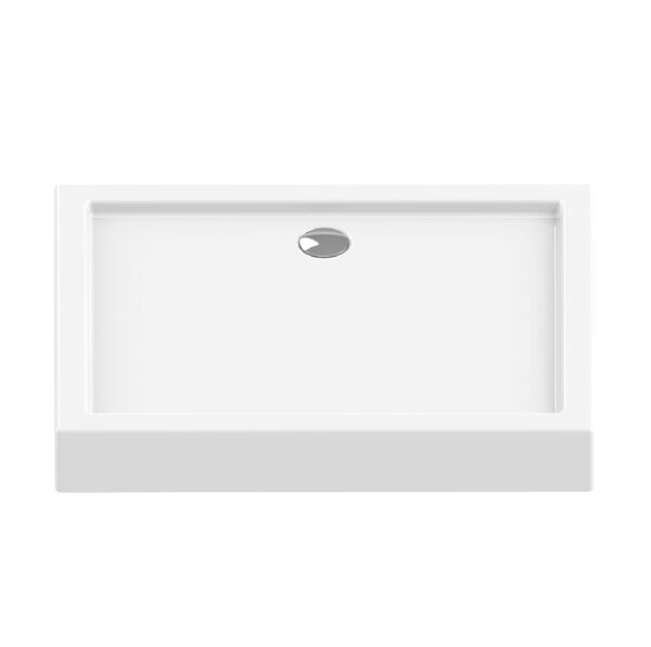 Brodzik akrylowy, prostokątny z otworem pod syfon o średnicy 90 mm. Odpływ zlokalizowany w połowie długości jednego z boków. Głębokość 3 cm. Obudowa zintegrowana z brodzikiem. Podstawa - stelaż.