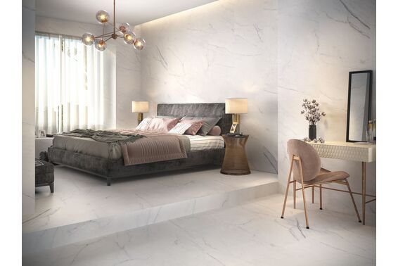 Nikea to kolekcja w której znajdziemy matową płytkę podłogową w rozmiarze 60x120 cm. Płytka o mrozoodpornej budowie może być stosowana także dla ozdoby powierzchni na zewnątrz naszych domów. Jest gładka a pokrywa ją wzór, który najczęściej spotkamy w łazienkach czy salonach w stylu glamour. To imitacja marmuru calacatta, białego z szarymi muśnięciami. Dzięki rektyfikowanym krawędziom możemy ją układać z zastosowaniem minimalnej szerokości fugi zyskując jednolitą, dużą powierzchnię bez widocznych łączeń.
