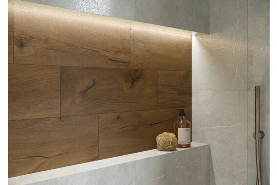 Ze względu na specyfikę produkcji płytek, mogą wystąpić różnice w odcieniach pomiędzy płytkami na ścianę, podłogę oraz dekoracjami (ściennymi, cokołami, listwami, stopnicami itp.). Więcej>>
