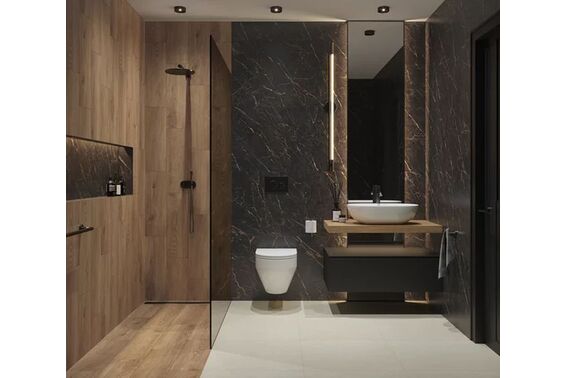 Ze względu na specyfikę produkcji płytek, mogą wystąpić różnice w odcieniach pomiędzy płytkami na ścianę, podłogę oraz dekoracjami (ściennymi, cokołami, listwami, stopnicami itp.). Więcej>>