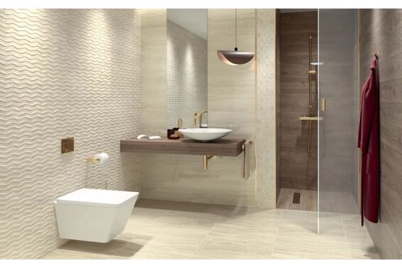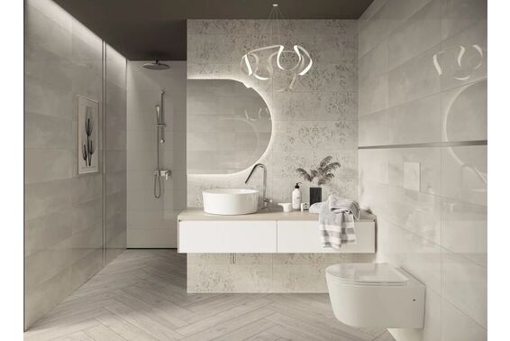 Ze względu na specyfikę produkcji płytek, mogą wystąpić różnice w odcieniach pomiędzy płytkami na ścianę, podłogę oraz dekoracjami (ściennymi, cokołami, listwami, stopnicami itp.). Więcej>>