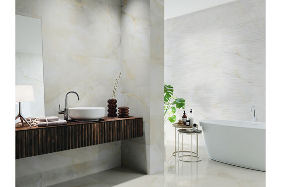 Quios to kolekcja nowocześnie elegancka o stonowanym wzorze marmuru w dwóch odcieniach cream i silver. Kolekcja, która pozwoli stworzyć zachwycające wnętrze łazienki, kuchni czy też wyjątkowej urody podłogę w salonie. Wszystkie płytki są rektyfikowane z błyszczącym wykończeniem. Płytki ścienne dostępne są w rozmiarze 40x120 cm i w wersji gładkiej oraz dwóch strukturalnych. Płytki podłogowe, mrozoodporne, dostępne są wyłącznie w wersji gładkiej w dwóch wymiarach 60x60 cm i 60x120 cm.