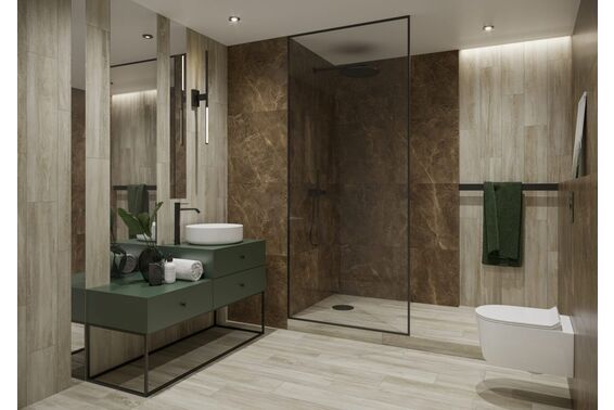 Ze względu na specyfikę produkcji płytek, mogą wystąpić różnice w odcieniach pomiędzy płytkami na ścianę, podłogę oraz dekoracjami (ściennymi, cokołami, listwami, stopnicami itp.). Więcej>>