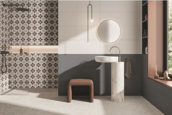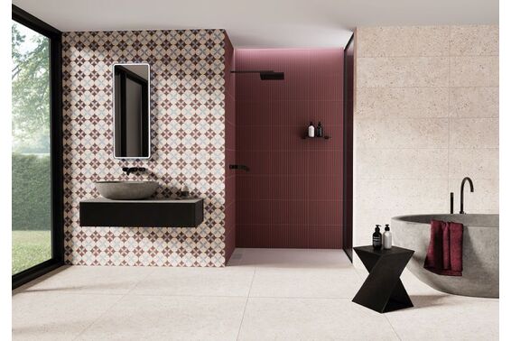Ze względu na specyfikę produkcji płytek, mogą wystąpić różnice w odcieniach pomiędzy płytkami na ścianę, podłogę oraz dekoracjami (ściennymi, cokołami, listwami, stopnicami itp.). Więcej>>