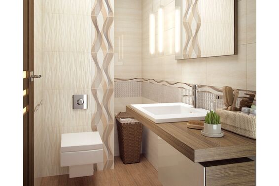 Ze względu na specyfikę produkcji płytek, mogą wystąpić różnice w odcieniach pomiędzy płytkami na ścianę, podłogę oraz dekoracjami (ściennymi, cokołami, listwami, stopnicami itp.). Więcej>>