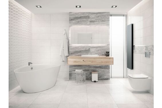 Ze względu na specyfikę produkcji płytek, mogą wystąpić różnice w odcieniach pomiędzy płytkami na ścianę, podłogę oraz dekoracjami (ściennymi, cokołami, listwami, stopnicami itp.). Więcej>>
