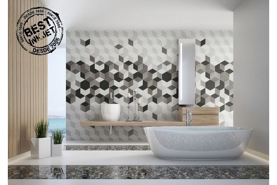 Ze względu na specyfikę produkcji płytek, mogą wystąpić różnice w odcieniach pomiędzy płytkami na ścianę, podłogę oraz dekoracjami (ściennymi, cokołami, listwami, stopnicami itp.). Więcej>>