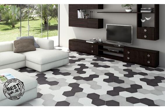 Cechą wspólną płytek Toscana jest kształt foremnego sześciokąta o wymiarach 25,8x29 cm, satynowa powierzchnia oraz materiał, z którego powstały. Płytki wykonano z gresu, dzięki czemu mają właściwości mrozoodporne. W kolekcji jest prawie pięćdziesiąt płytek, które różnią się kolorystyką i wzornictwem. Płytki Acuarelas mają piękne wzory w kwiaty. Dostępne są w ośmiu pakowanych losowo wariantach. Vintage to pięć płytek pakowanych losowo z ciemnymi wzorami na jasnym tle. Powierzchnia płytek Amarillo i Negro została podzielona na romby, które mając inne odcienie tworzą po ułożeniu trójwymiarowy efekt. Reszta płytek to delikatne wzory geometryczne i kwiatowe lub jednolite powierzchnie.Płytki to propozycja na ściany i podłogi do wnętrz w stylu nowoczesnym, klasycznym lub vintage.