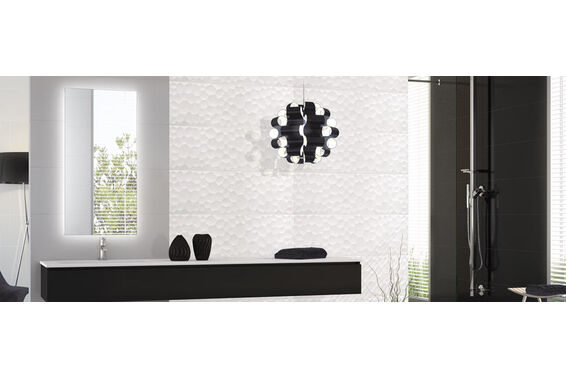 Ze względu na specyfikę produkcji płytek, mogą wystąpić różnice w odcieniach pomiędzy płytkami na ścianę, podłogę oraz dekoracjami (ściennymi, cokołami, listwami, stopnicami itp.). Więcej>>