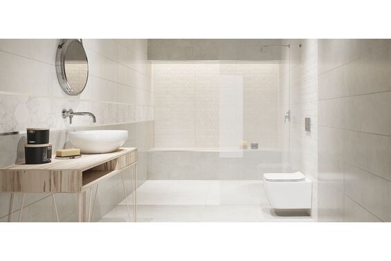 Ze względu na specyfikę produkcji płytek, mogą wystąpić różnice w odcieniach pomiędzy płytkami na ścianę, podłogę oraz dekoracjami (ściennymi, cokołami, listwami, stopnicami itp.). Więcej>>