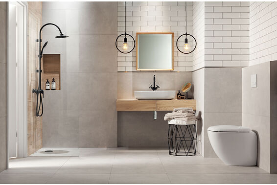 Ze względu na specyfikę produkcji płytek, mogą wystąpić różnice w odcieniach pomiędzy płytkami na ścianę, podłogę oraz dekoracjami (ściennymi, cokołami, listwami, stopnicami itp.). Więcej>>