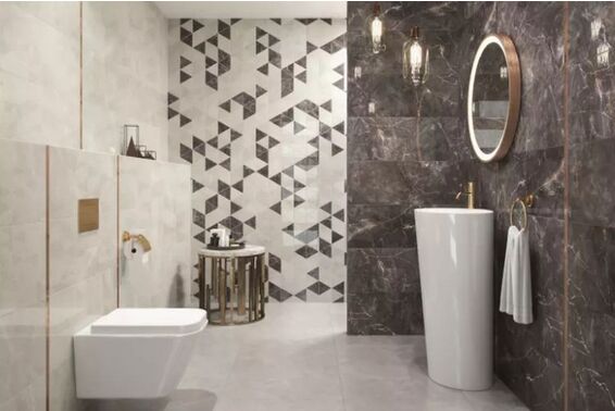 Jednym z najciekawszych elementów kolekcji Kaledonia jest mozaika, która stanowi kontrastujący akcent. Mozaika Kaledonia składa się z trójkątów w barwach odpowiadających paletom bieli i czerni kolekcji, dodając wnętrzu oryginalnego wyglądu i podkreślając jego nowoczesność.Ta innowacyjna forma dekoracji pozwala na tworzenie efektownych wzorów i kompozycji, które przyciągają wzrok i nadają pomieszczeniom wyjątkowego charakteru. Mozaika Tubądzin Kaledonia doskonale wpisuje się w nowoczesne trendy aranżacyjne, dodając wnętrzom unikalnego i artystycznego wyrazu.