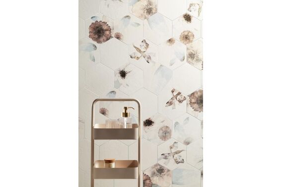 Kolekcja Tubądzin Mild Garden to doskonały wybór dla miłośników piękna natury i subtelnych, pastelowych kolorów. Płytki z motywem kwiatowym w kształcie geometrycznego heksagonu będą idealne dla tych, którzy cenią sobie oryginalny i niepowtarzalny styl.Płytki Tubądzin Mild Garden można wykorzystać w różnorodnych aranżacjach wnętrz, np. w połączeniu z drewnianymi elementami czy z ceglanymi ścianami. Białe płytki w formacie heksagonu 22,1x19,2 cm to doskonała propozycja dla miłośników klasycznego stylu, a ozdobne listwy i boazeria angielska dodadzą pomieszczeniu elegancji i szyku.