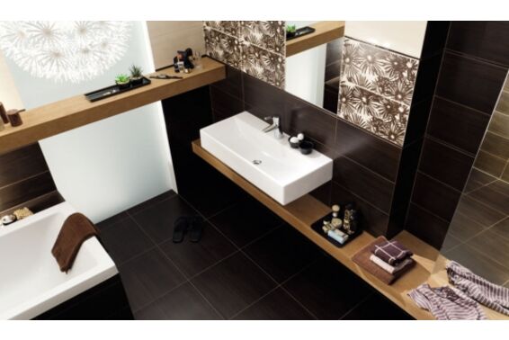 Płytki Tubądzin Modern Wood to płytki ceramiczne, przeznaczone do łazienek, których struktura imituje naturalne drewno. Kolekcja składa się z bazowych płytek ściennych w odcieniu czerni i beżu i dopasowanych do nich kolorystycznie płytek podłogowych. Ozdobne płytki ceramiczne Tubądzin Modern Wood to dekor z motywem kwiatów, mozaiki i listwy. Dostępne formaty płytek to: 44,8x22,3cm, 44,8x44,8cm, mozaiki 30x30cm.