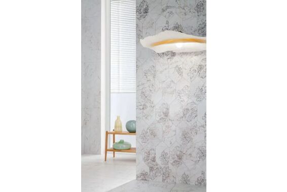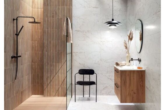 Na delikatnej, satynowej powierzchni ze wzorem marmuru nałożony jest linearny rysunek kwiatów maku, w różnych stanach rozkwitu, pociągnięty platynową nitką. To właśnie takie detale nadają kolekcji wyjątkowego charakteru i sprawiają, że płytki ceramiczne z kolekcji Tubądzin Rochelle są doskonałym wyborem dla osób, które szukają wyjątkowego i niebanalnego rozwiązania dla swojego wnętrza.Kolekcja łączy ciepłe beże i chłodne szarości w jeden spójny obraz. Ramą dla tego obrazu są lamele, które dopełniają aranżację i wprowadzają do wnętrz przytulny urok drewna. To idealne rozwiązanie dla osób, które cenią sobie naturalny wygląd swojego domu i chcą wprowadzić do niego ciepło i harmonię.